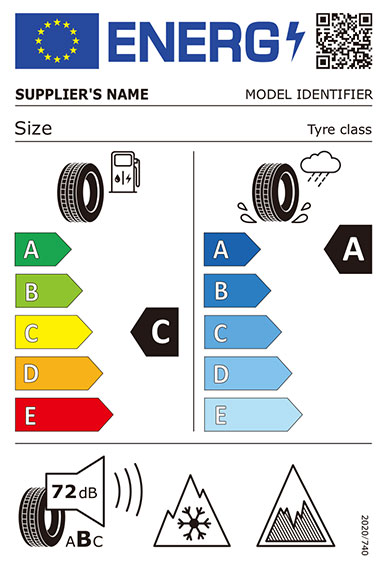 In addition to the standard label, there are also options for including icons relating to severe snow conditions (3PMSF) and/or grip in icy conditions (for C1 tyres only).